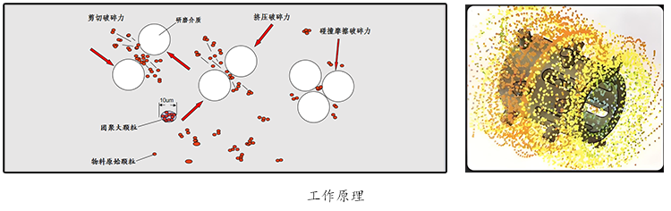 2.3、由于研磨介質(zhì)距離軸心的的距離不同,所獲得的速度各不相同產(chǎn)生速度差,在運動過程中會發(fā)生碰撞使物料破碎。